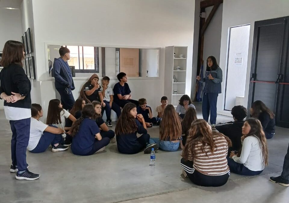 Alumnos de primer año de la Escuela de Educación Secundaria n.º 11, a cargo de la docente Dolores Arzac, observaron las obras de arte y reflexionaron sobre el período histórico abordado por ellas, con el foco puesto en los Derechos Humanos.