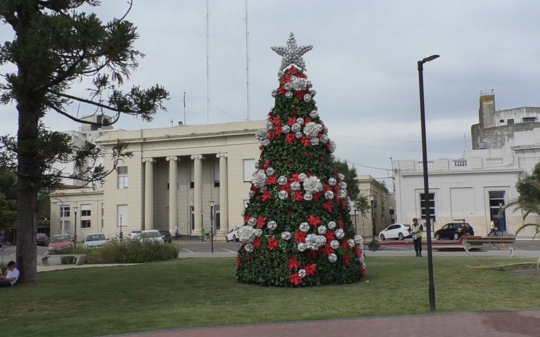 El árbol navideño fue armado por el personal del PROLIM utilizando elementos reciclables, como ya es costumbre todos los años, y colocado frente al Palacio Municipal, en uno de los laterales de la Plaza San Martín.