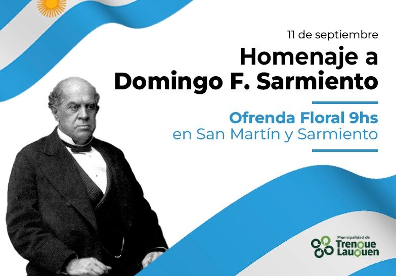 En conmemoración del 135º aniversario del fallecimiento de Domingo Faustino Sarmiento, por el día del Maestro, la municipalidad de Trenque Lauquen realizará el lunes próximo (11) un homenaje al prócer y fuerte impulsor de la educación pública en nuestro país, colocando a las 9 una ofrenda floral al pie del busto ubicado en la esquina de las calles Sarmiento y San Martín.