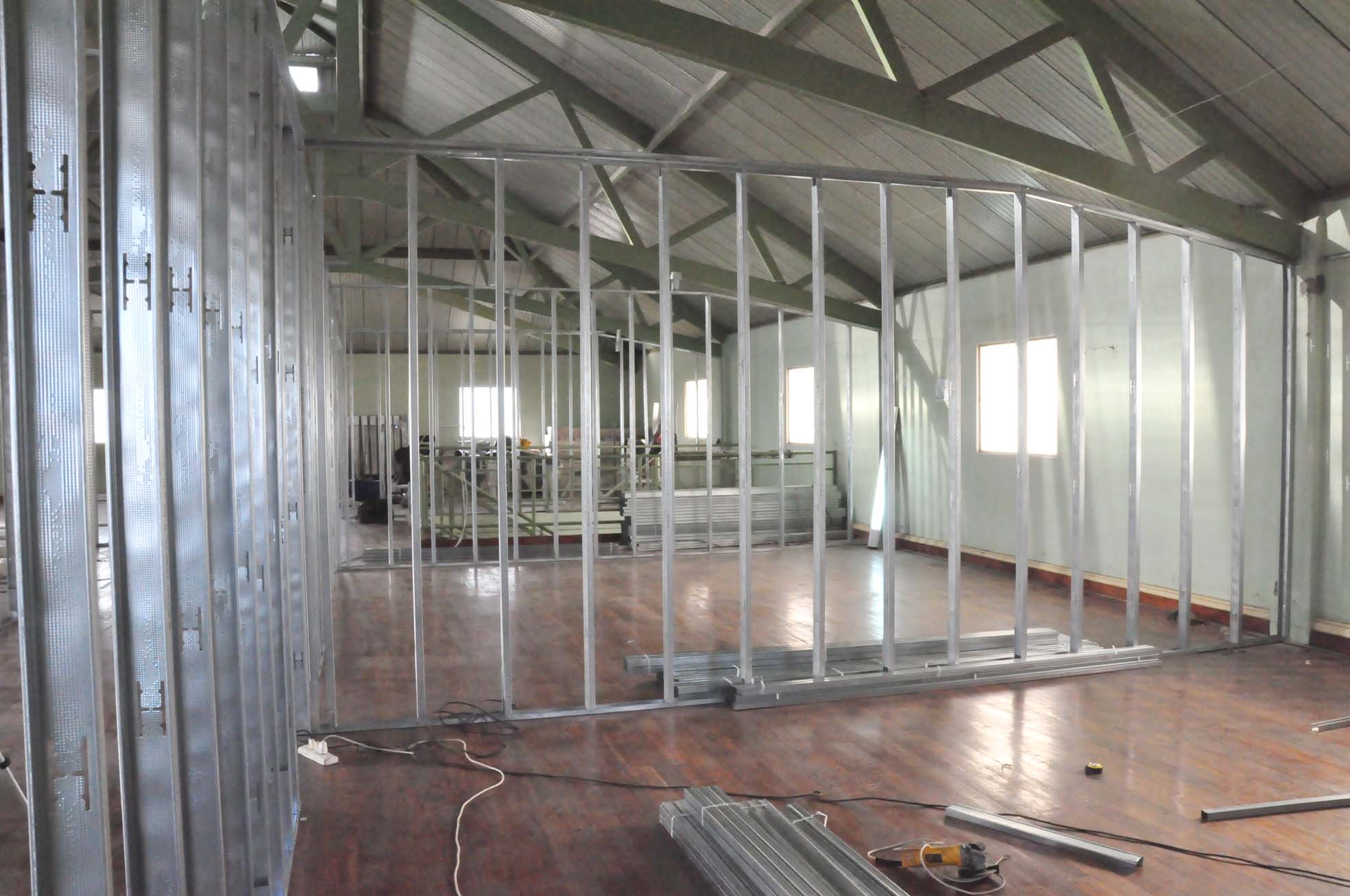 Personal municipal y contratado en estos momentos está colocando la perfilería metálica de durlock. El jueves llegarán las aberturas y se iniciará la colocación. Luego, se seguirá con la instalación eléctrica, se emplacará el cielorraso y, por último, las paredes.