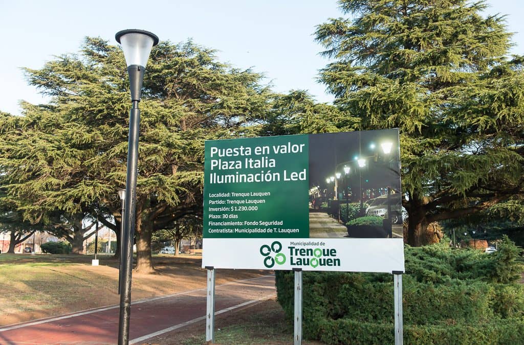La Municipalidad de Trenque Lauquen finalizó la instalación de 60 luminarias LED en plaza Italia ubicada entre las calles Cuello, Monferrand, Urquiza y Mariano Moreno.