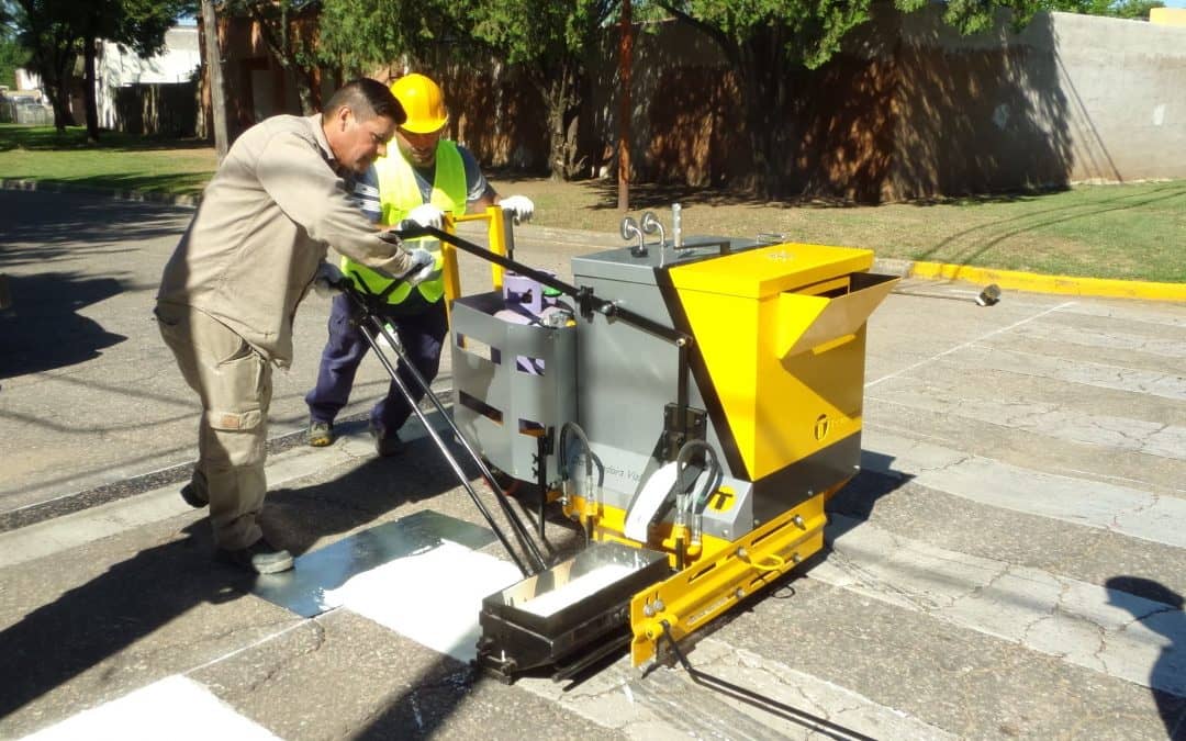 El titular del área, Marcos Soriano, explicó que “la ventaja del nuevo equipo es que las sendas peatonales que se pintan con esta pintura duran cinco años, contra la demarcación vial en frío que veníamos usando y que dura un año”, lo que redundará en una mayor eficiencia y ahorro económico.