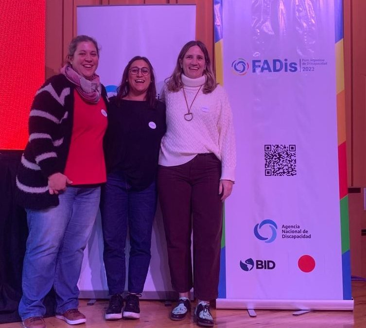 La directora de Discapacidad del Municipio, Ana Etchepare; junto a Emilia Coria, integrante del equipo del área, y Eugenia Bouissou, coordinadora del Centro de Día, participaron del primer Foro Argentino de Discapacidad (FADIS), organizado por la Agencia Nacional de Discapacidad (ANDIS).