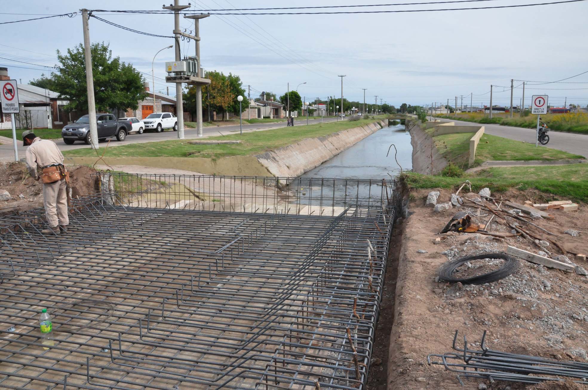 El Secretario de Obras y Servicios Públicos del Municipio, Miguel Bulián, informó que se está trabajando en el lugar. “Primero se termina de romper el puente que ya no permitía la circulación, luego se realizan tareas de limpieza y en este momento se están colocando las armaduras de hierro, para luego llenar con hormigón”.