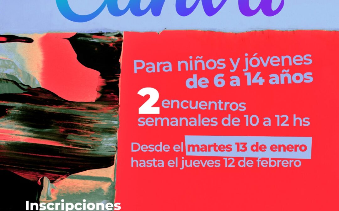 . Taller de Canva para niños y jóvenes de 6 a 14 años. El curso tendrá dos (2) encuentros semanales de 10 a 12, los martes y jueves. Comienza el martes 13 de enero y se extenderá hasta el jueves 12 de febrero.