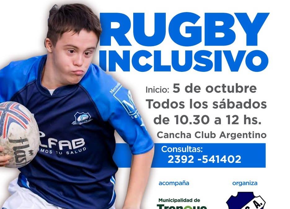 El sábado que viene (5 de octubre) a las 10.30 hs. en Foot Ball Club Argentino se realizará la primera clase de rugby inclusivo con la finalidad de formar un grupo que continúe entrenando en la ciudad.
