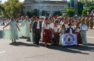 A continuación, desfiló el Centro Vasco Euskal Sustraiak (“Raíces Vascas”), institución que desde 1998 trabaja en la preservación y difusión de sus tradiciones, su lengua y su identidad cultural. La delegación estuvo integrada por miembros de la comisión directiva y del grupo de danzaris (bailarinas), acompañados por el permanente apoyo de socios y colaboradores, quienes sostienen el crecimiento de la institución y mantienen viva la cultura vasca en la ciudad.