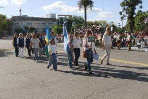 En primer lugar, desfilaron los grupos scouts. El Grupo Scout “General Conrado E. Villegas”, con una trayectoria que se remonta a 1925 y más de 100 años de historia, celebrando además 20 años de su última reapertura en 2006, perteneciente a Scouts de Argentina Asociación Civil, con la participación de niños, niñas y jóvenes, acompañados por educadores y familias.
