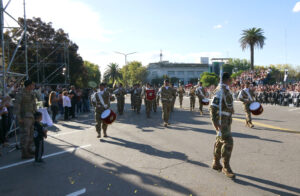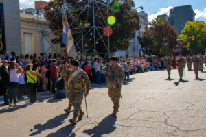 Después fue el turno de una unidad del Ejército Argentino, correspondiente al Regimiento de Caballería de Exploración 3 “Coraceros General Pacheco”, institución con una extensa trayectoria histórica. La formación fue acompañada por la Banda Militar “Malvinas Argentinas”, dirigida por el capitán Leonardo Lazarte, cuyos acordes aportaron solemnidad y emoción al paso de las tropas, reforzando el vínculo entre las fuerzas armadas y la comunidad.