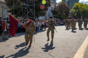 Durante su paso, se destacó la presencia de la Bandera Nacional de Guerra y el estandarte de la unidad, símbolos de la historia y tradición del regimiento, junto a una sección de desfile integrada por 18 hombres que representan con disciplina y orgullo a esta histórica fuerza.