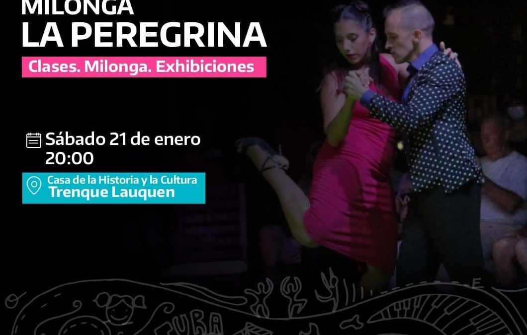 En otra propuesta pensada para los amantes del tango, el sábado 21 de enero próximo llegará a Trenque Lauquen Milonga La Peregrina, un espectáculo integral que forma parte del programa de verano “Abrazados al Tango”, del Instituto Cultural de la provincia de Buenos Aires y que cuenta con el acompañamiento de la dirección de Cultura y Educación del municipio de Trenque Lauquen.
