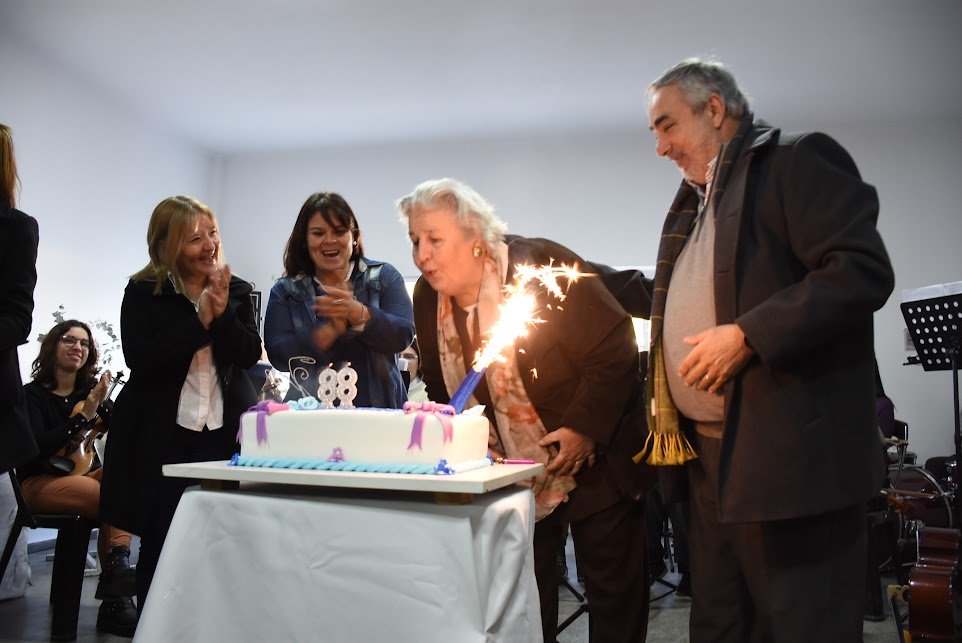 Luego del acto protocolar, quedó abierta la exposición de trabajos realizados por los alumnos/as en los distintos talleres durante el año, se soplaron las velitas de la torta de cumpleaños y los presentes compartieron un momento musical con la presentación de integrantes de la Escuela Municipal de Música y la cantante Florencia Larrigandiere.
