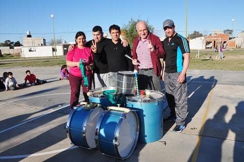 Los vecinos se fueron acercando desde las 17 hs., y luego de la entrega de 2 bombos 2 zurdos y 1 repique, la murga ensayó junto a los funcionarios y vecinos presentes.
