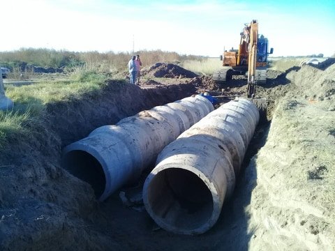 En el área de División Norte y Cicoria, con el objetivo de habilitar la nueva traza del canal de desagües pluviales, se colocaron dos filas de caños de hormigón de 1,2 mts. de altura y 15 mts. de longitud.