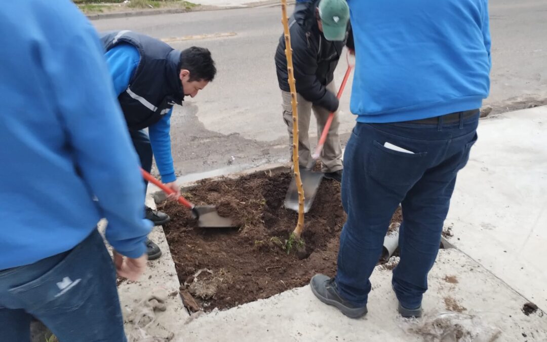 En el marco del Plan Integral de Arbolado Urbano, la dirección de Espacios Verdes del Municipio continúa con la forestación en veredas de la ciudad culminando los trabajos en las dos sucursales de la empresa La Anónima: en la ubicada sobre la avenida García Salinas donde previamente se colocaron 10 Ciruelos de flor y ahora, en la de Simini y Di Gerónimo donde se plantaron fresnos dorados.