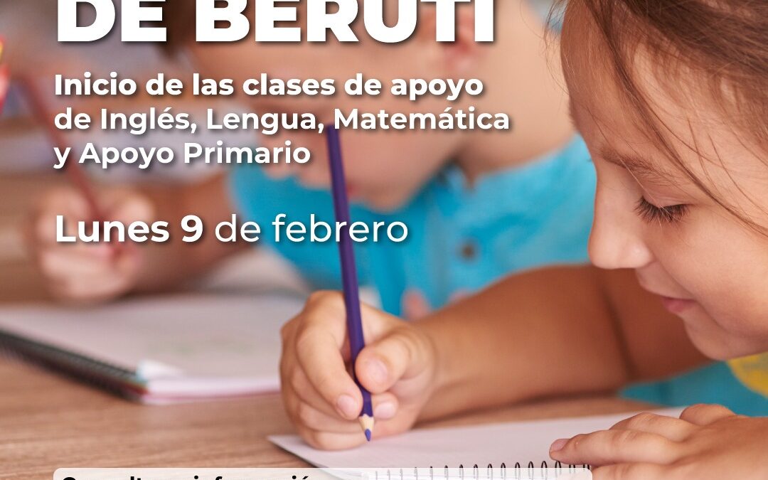 El próximo lunes (9) en la Escuela Municipal de Beruti comenzarán las clases de apoyo en Inglés, Lengua, Matemática y Apoyo Primario.