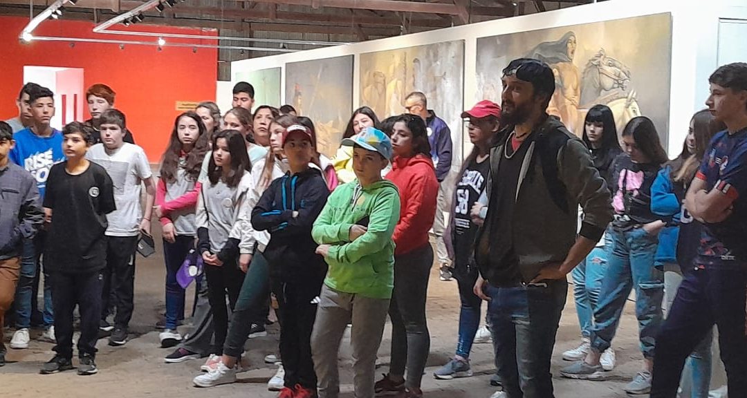 Alumnos/as de la Escuela Secundaria n° 3 de Quenumá visitaron esta mañana (lunes) el Museo de Arte Mural “Rodolfo Campodónico”, que funciona en calle Rivadavia nº 163, en el cuadro de la Estación.