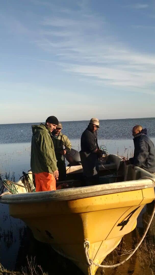 El licenciado en biología, Horacio Oñatibia, y el técnico ayudante Emilio Federico, de la Dirección de Desarrollo Marítimo y Fluvial, dependiente del Ministerio de Agroindustria de la Provincia, realizaron un estudio sobre la población de pejerrey en la laguna Las Tunas, con el fin de analizar si se habilita la pesca comercial en ese espejo lacunar.