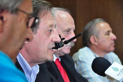 El Intendente Municipal, Cdor Raúl Feito, y el Secretario de la Unión Obreros Metalúrgicos (UOM), Carlos Benito, ofrecieron esta mañana una conferencia de prensa para anunciar el inicio de cursos de capacitación para trabajadores metalúrgicos y no metalúrgicos, en el marco de un convenio firmado con el Ministerio de Trabajo de la Provincia Buenos Aires. También estuvieron presentes el Director de la Escuela Técnica Nº 1, Luis Conesa, institución que aportará la infraestructura y el recurso humano para el dictado de cursos; el Presidente de la Cámara de Comercio e Industria local, Antonio Márquez y el Secretario Adjunto de la UOM, Alberto Barrios.
