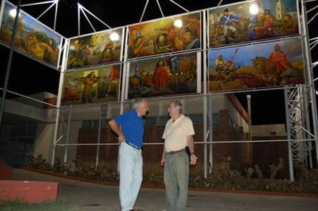 El Intendente Municipal, Cdor. Raúl Feito, visitó anoche (jueves) el Museo Histórico, donde ya comenzaron a colocarse las gigantografías de los murales del artista plástico Rodolfo Campodónico, y en horario nocturno se pueden apreciar con la iluminación especialmente acondicionada.