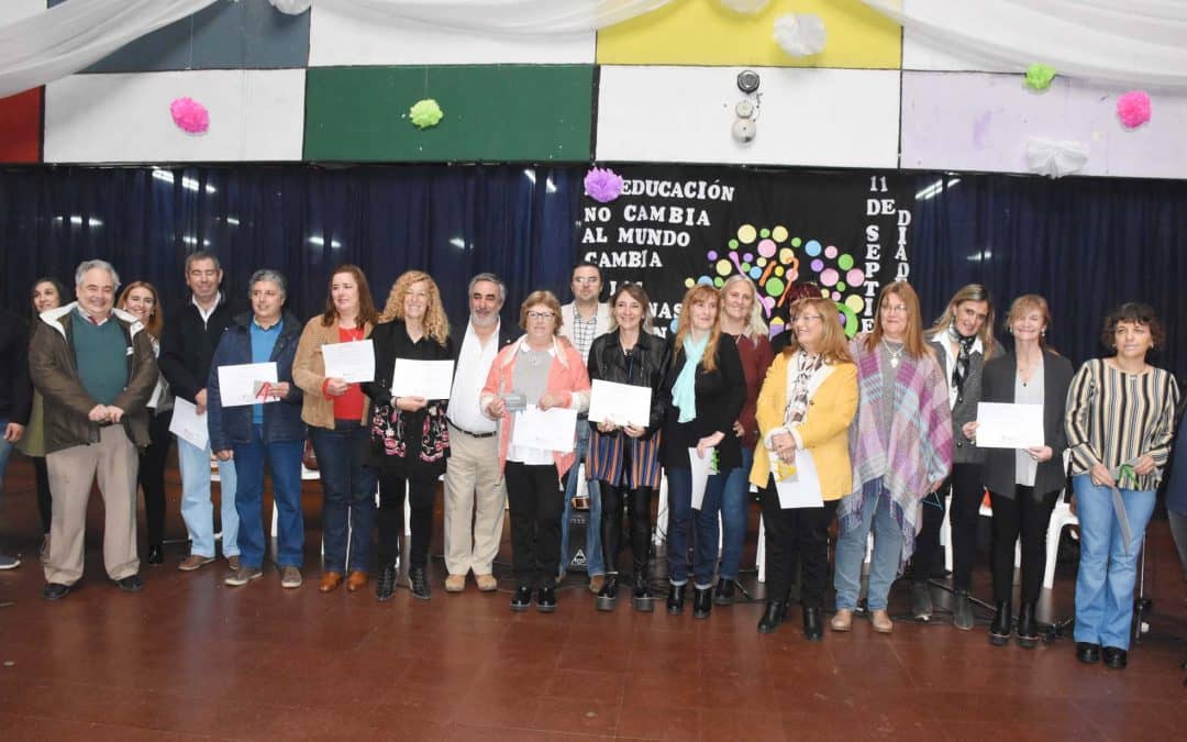 El acto oficial por el Día del Maestro se realizó hoy (martes) por la mañana en la Escuela Primaria nº 45 y contó con discursos, la participación del coro de la institución educativa y el ensamble de ukeleles, el reconocimiento a 46 docentes jubilados y feria del plato.