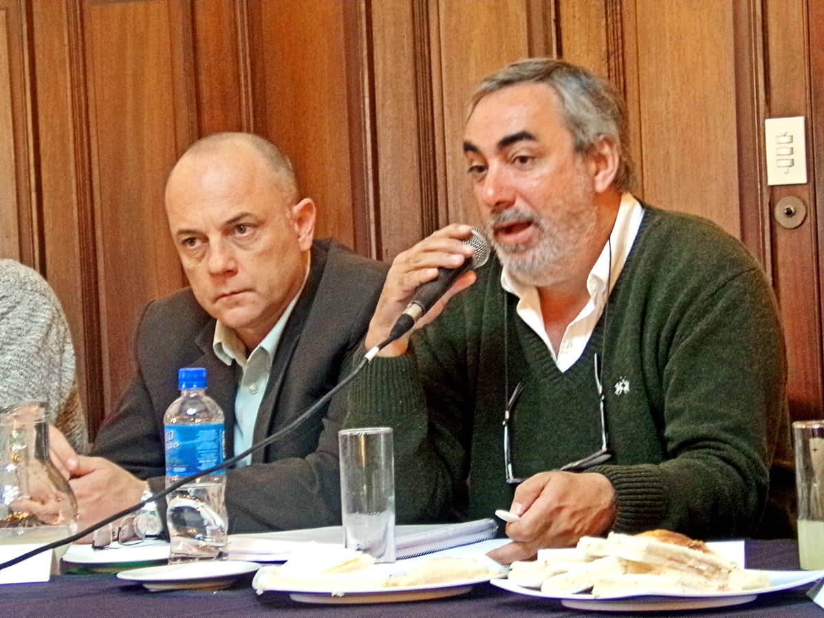 Marcelo Rastelli, Director de Ingeniería de la Dirección Provincial de Hidráulica y Pablo Rodríguez, presidente de la Autoridad del Agua, presidieron la reunión que contó con la presencia de los  intendentes de Pehuajó, General Villegas, Rivadavia, Carlos Tejedor, Carlos Casares, Bragado y Trenque Lauquen.