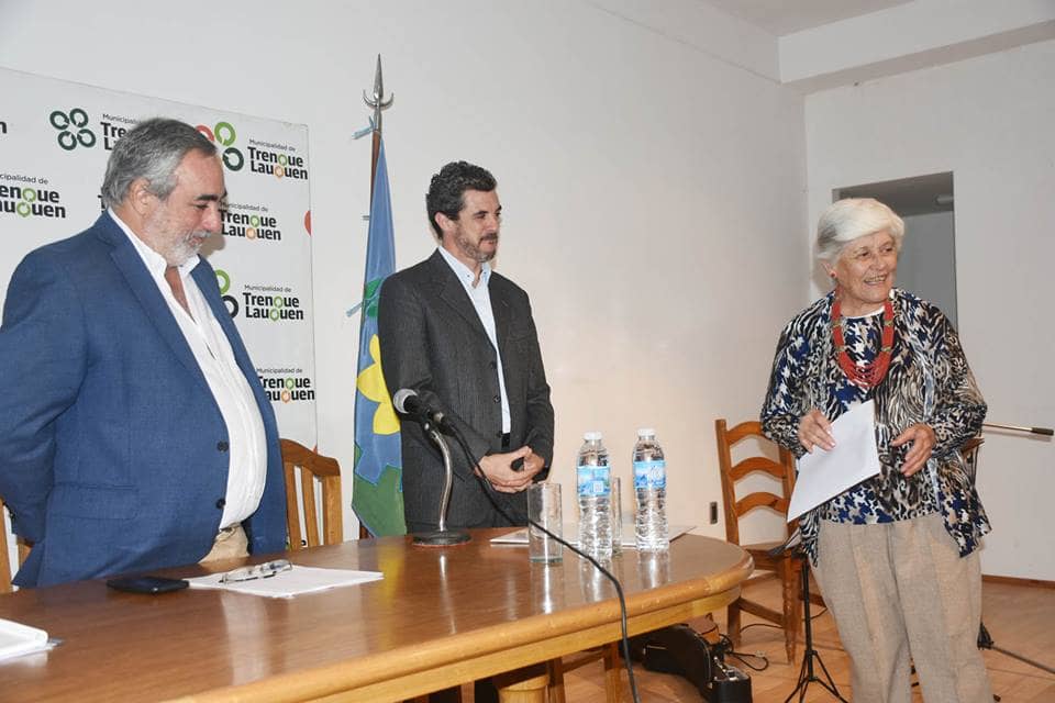 Ruiz recordó que en sus inicios en la dirección del Archivo provincial, en el año 2016, la profesora Haydeé Merino le “reclamó” una deuda: Trenque Lauquen había sido elegida en 1976 como sede del por entonces Tercer Congreso de Historia de los Pueblos. La dictadura militar de ese año interrumpió el desarrollo de esa actividad y hoy Ruiz, luego de relatar el proceso de búsqueda de los documentos correspondientes, entregó a Merino una nota de aceptación. La profesora subió al escenario a recibirla y se recordó a quienes habían acompañado la solicitud en 1976, en el centenario de la fundación de Trenque Lauquen.