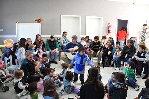 El Jardín Manuelita realizó una representación teatral con padres y maestras, sobre una versión adaptada de Caperucita Roja, y además el papá de una de las alumnas de la institución, Juan Spain, cantó con su guitarra junto a los chicos.