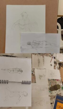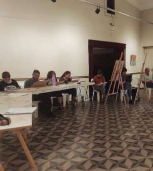El seminario se dictó en el Teatro Español y contó con el modelaje del artista local Kevin Joyce. Además de llevar a cabo la producción plástica a partir de la observación del modelo, también se realizó un registro fotográfico del proceso.