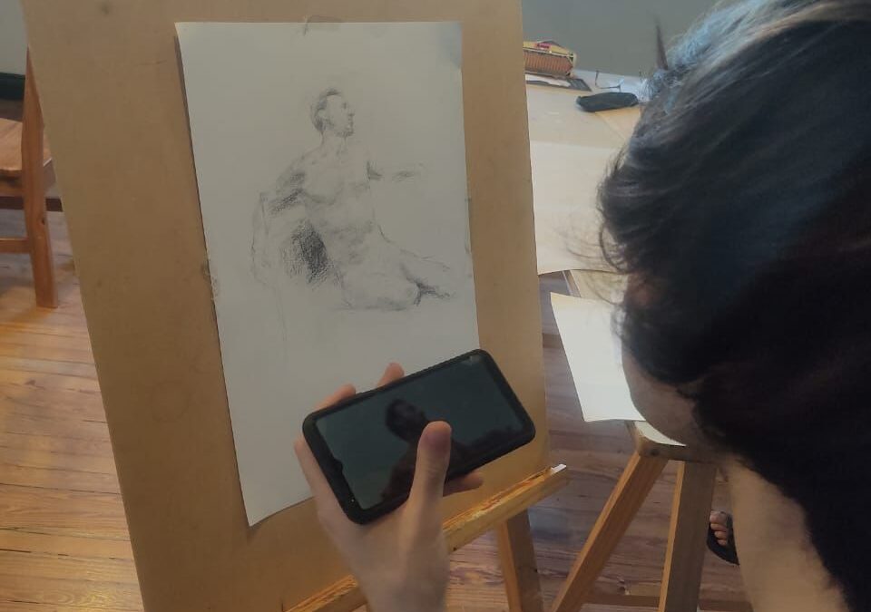 El seminario se dictó en el Teatro Español y contó con el modelaje del artista local Kevin Joyce. Además de llevar a cabo la producción plástica a partir de la observación del modelo, también se realizó un registro fotográfico del proceso.