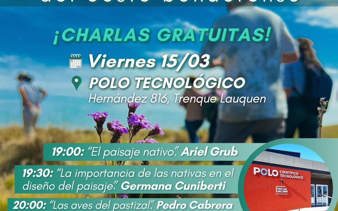 Las actividades comenzarán a las 19 con la charla “El Paisaje nativo”, a cargo de Ariel Grub y continuarán a las 19.30 con “La importancia de las nativas en el diseño del paisaje” por la paisajista Germana Cuniberti para cerrar a las 20 con la charla “Las aves del pastizal”, a cargo de Pedro Cabrera.