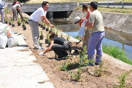 A cargo de las cooperativas Trabajo Digno y Juntos para el Progreso, se están ejecutando tareas de forestación en la calle Llambías, plantando los primeros 260 metros lineales del futuro paseo, con el asesoramiento de la paisajista Germana Cuniberti, responsable del proyecto forestal.