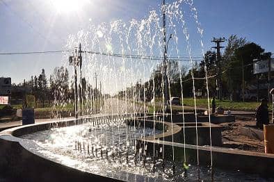 Esto es una fuente que se ha hecho con trabajadores municipales y algún albañil contratado y el trabajo fundamental de Cristian Martínez y Miguel Pecochea como plomero. Hoy ya estamos terminando con esto, faltan algunos detalles de iluminación, forestación y pintura. Luego se colocarán tres mástiles para las Banderas Nacional, Provincial y Distrital”, detalló el Jefe Comunal.