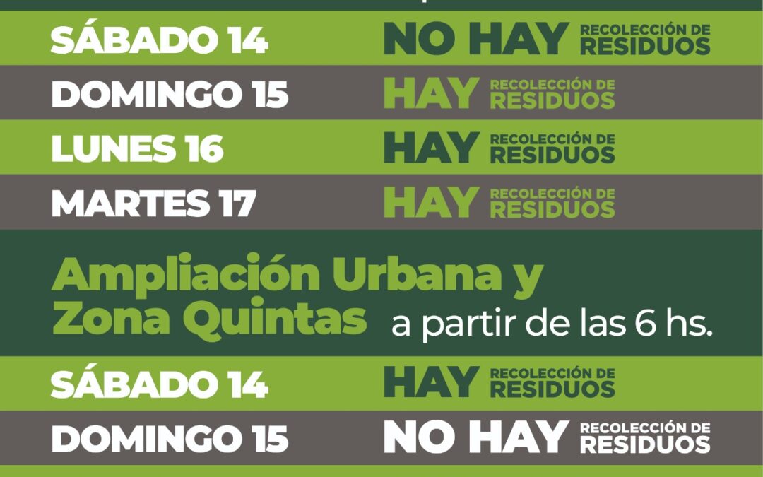 Sábado 14: HAY recolección (orgánicos y no reciclables).