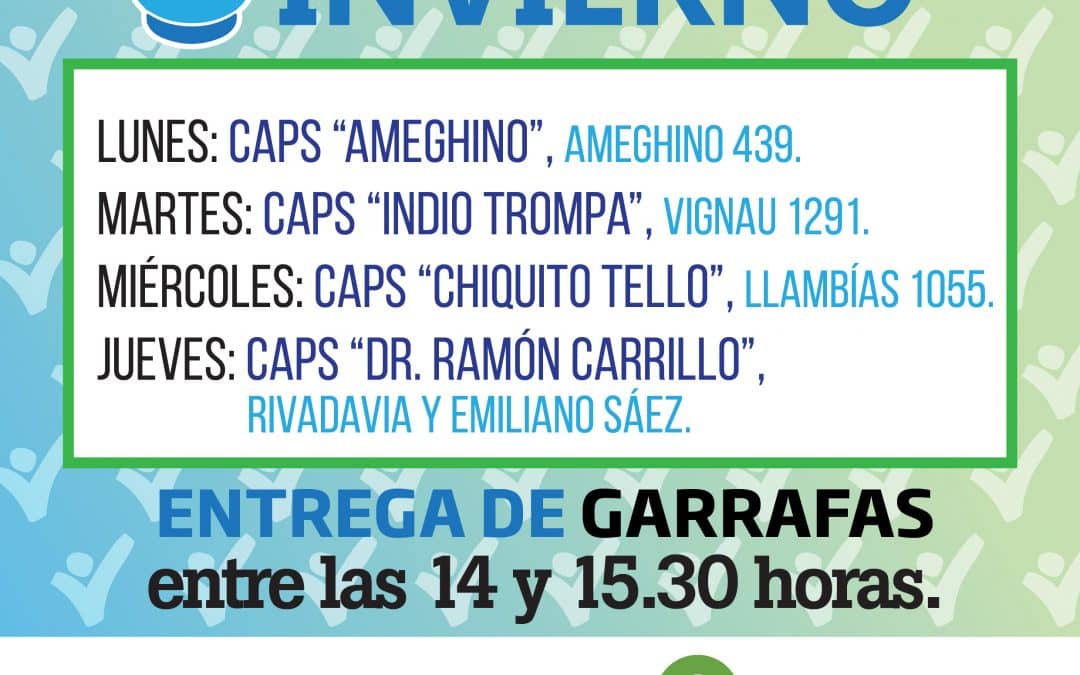 El Programa Invierno continuará desarrollándose hoy (jueves) con la venta de garrafas subsidiadas por parte de la Municipalidad, en el CAPS Ramón Carrillo, desde las 14 hs.