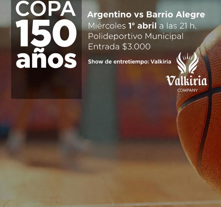 El partido de primera división de Básquet comenzará a las 21 h y serán los equipos de Barrio Alegre y Argentino los que se enfrentarán, en esta propuesta que también contará con un show en el entretiempo que estará a cargo de Valkiria Company.