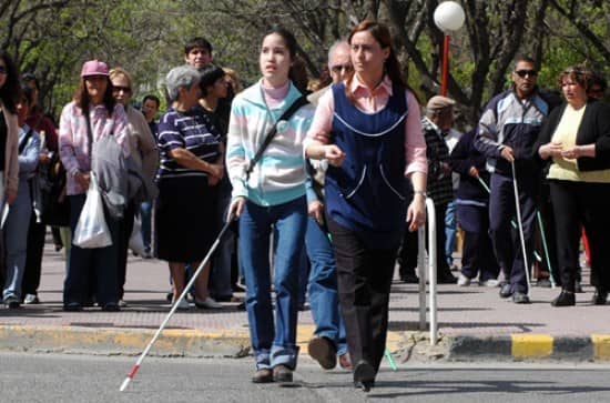- Deje que la persona ciega tome su brazo, el movimiento de su cuerpo le permite percibir el camino a recorrer