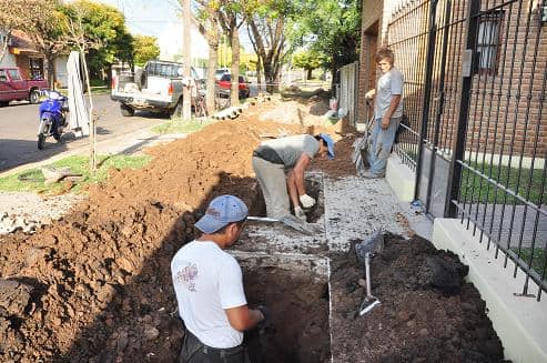Por otra parte, en el loteo de Campos, lindero al Barrio Aramendi y a las vías del ferrocarril se está procediendo a la ejecución de la red domiciliaria de cloacas.