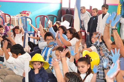 En primer lugar, los chicos hicieron un desfile representando a todos los sectores de la comunidad como bomberos, policías, médicos, barrenderos, etc.