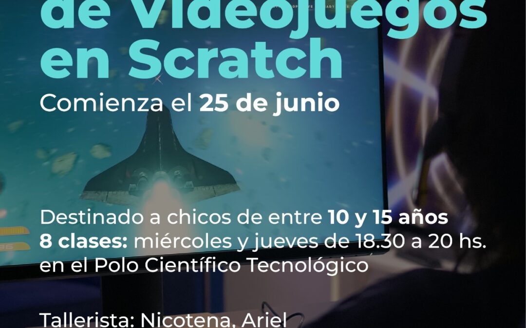 El taller Introducción a la Programación de Videojuegos en Scratch está destinado a chicos/as de entre 10 y 15 años, y será dictado por Ariel Nicotena. El mismo dará comienzo el miércoles 25 de junio, tendrá una duración de ocho (8) clases y se dictará miércoles y jueves de 18.30 a 20.