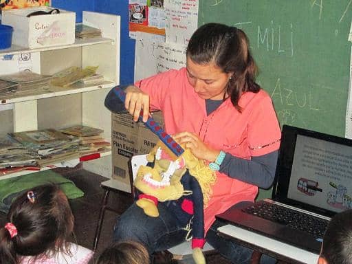Se utilizaron diapositivas, un macromodelo para enseñar la técnica de cepillado, y se entregaron cepillos y pastas dentales para cada niño, junto con folletos informativos para la familia. Al finalizar la charla, los niños y niñas recibieron un kit de cepillo y pasta dental.