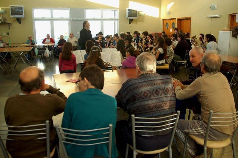 En el lugar los recibieron casi 50 abuelos, más algunos vecinos que se acercaron a disfrutar del concierto.