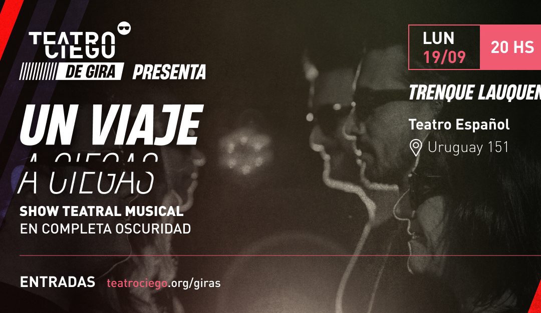 La compañía Teatro Ciego vuelve al Teatro Español de Trenque Lauquen el lunes 19 de septiembre a las 20, para ofrecer su espectáculo “Un viaje a ciegas”, una experiencia musical y teatral única, un viaje a través de los sentidos, en la más absoluta oscuridad.