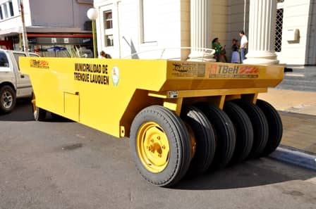 Se trata de un rodillo neumático con ruedas compactadoras, de 4 metros de largo, con 11 ruedas, que será destinado a la Dirección de Vial Rural, cuya tarea principal es el mantenimiento de los caminos rurales del distrito.