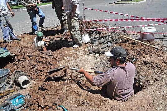 El responsable del área, Luis Petit, explicó que se rompió un caño de 200 milímetros en la esquina céntrica mencionada, y que 4 operarios debieron abocarse a las tareas de reparación desde las 7 hasta las 14 hs. Los trabajos se ejecutaron a 1,50 metro de profundidad, debiendo colocarse 1 metro de caño y 2 juntas. Según lo detallado por el funcionario municipal “lo más dificultoso, lo que demandó mucho tiempo, fue que el pozo se desmoronó. Tuvimos que desagotar con 2 bombas, pero finalmente se pudo dar solución a esta importante pérdida”, señaló.