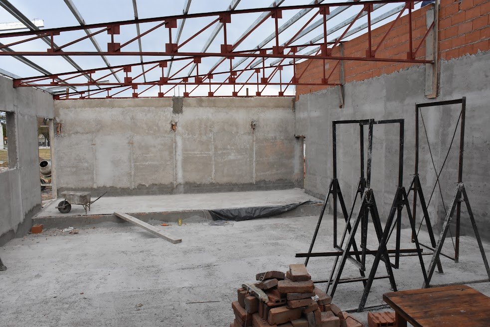 Asimismo, señaló que “la construcción contempla revoques gruesos y fino completo, la estructura de la cubierta con unas cabreadas metálicas sobre las que van perfilería de chapa y cubierta de chapas cincalum de 25”.