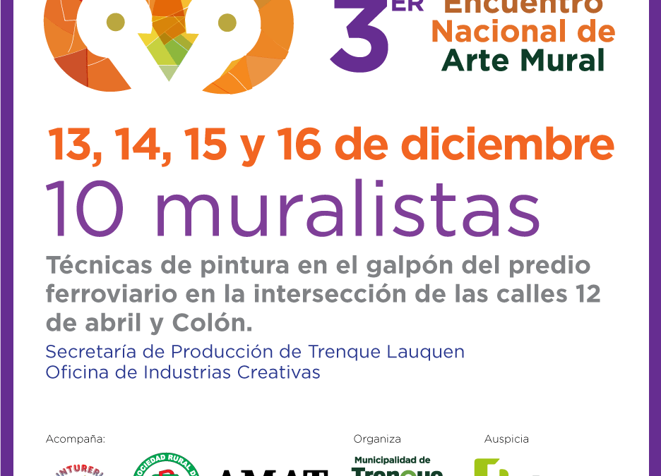 La municipalidad de Trenque Lauquen anunció hoy (martes) a través de la oficina de Industrias Creativas de la secretaría de Producción, la realización del III Encuentro Nacional de Arte Mural entre el viernes 13 y domingo 15 de este mes, en el predio de la Estación del ferrocarril.
