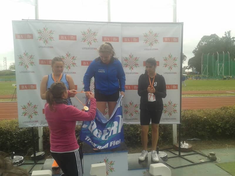 Martina Helguera en Lanzamiento de bala (categoría cadetes) obtuvo medalla de bronce (foto) y Jonathan Burtone en lanzamiento de disco categoría cadetes obtuvo el cuarto lugar.
