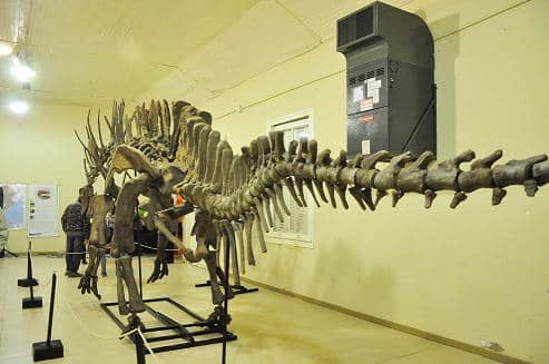 La muestra, que estará abierta hasta el jueves 11 de septiembre, cuenta con Dinosaurios a escala pertenecientes a Paleorama Museo Itinerante, y cuenta con las siguientes especies: Dinosaurio herbívoro de 10 x 3,5 metros; nidos de titanosaurios y huevos de con pichón; tortugas marinas; peces, y cocodrilo marino en laja; cráneo de paragosaurus; tiranosaurio rex; cráneo de carnotaurus.