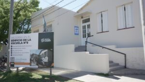 En la Escuela Primaria nº 8, ubicada en Roca y Pasteur, ya se concluyeron los trabajos en el exterior del edificio y ahora se avanza en el sector interno con las reparaciones de las paredes, retirando los zócalos existentes para colocar nuevos de PVC, y arreglando y reforzando una losa interna que contiene equipos de aires acondicionados.
